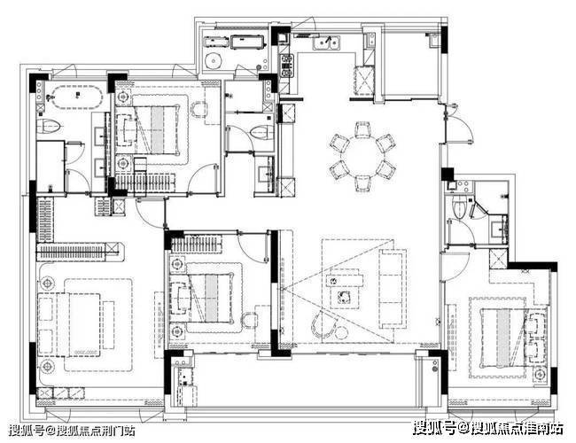 这是为美术生打造的270度环幕江景大平层,高楼层赋予的辽阔视野,江景成为空间的天然背景。