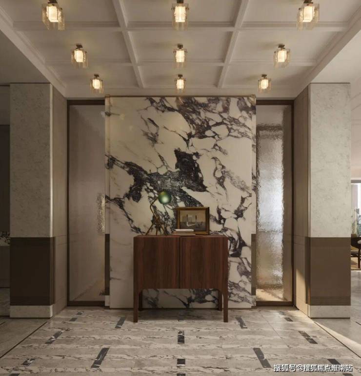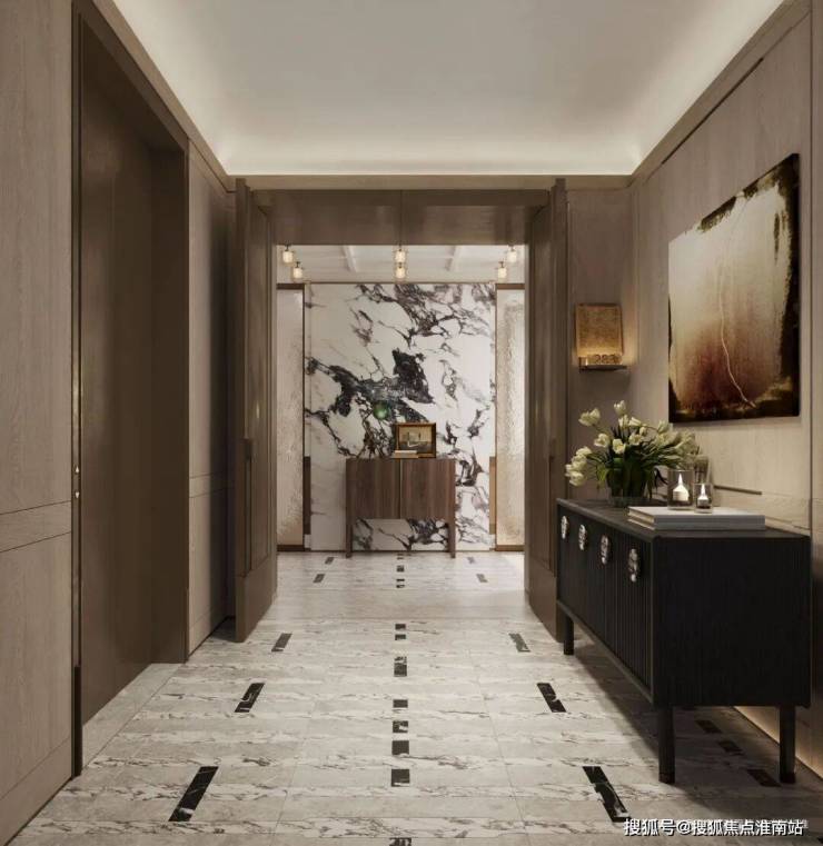 第一重:旗舰门厅与十二帆影:业主先穿过寓意“上海之帆”的旗舰门厅,再路过12座8米高的“帆影门廊”,建筑语汇先将滨江的航海文化融入归家礼序。