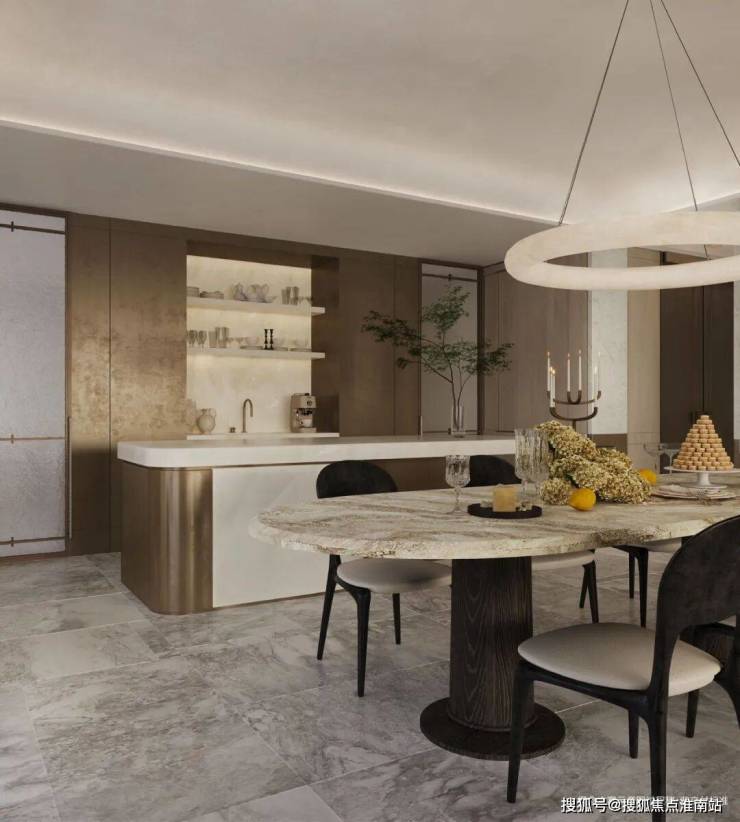 石材背景墙、岛台及柜体凹龛台面提供世纪冰玉岩板、塞亚白岩板、皇家白玉石材等多款珍稀石材可选。