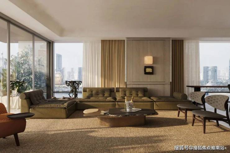 项目首次提出“全景舱”概念,通过建筑扭转32.5°,让更多户型获得270°环幕江景。这在黄浦江滨江住宅中是首创。