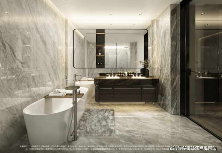 四个卧室均配备独立卫浴,隐私性与尊崇感拉满。南向双卧为超级套房,双台盆、浴缸等配置堪比五星级酒店。