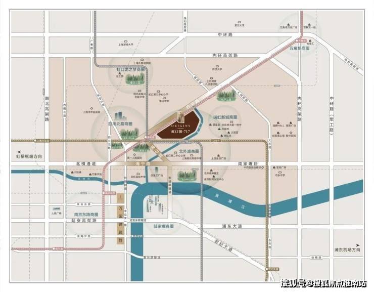 项目择址上海虹口内环内,周边醇熟资源环伺,揽高端商业、健康医疗、文化地标、星级酒店等丰盛配套,于城央之上掌驭繁华,醇熟生活便利尽得。
