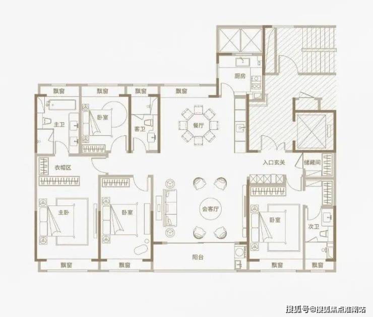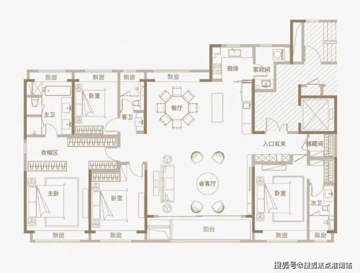 光从户型图来看,三种户型均为四开间朝南设计,同比市面上两百平左右的平层住宅,南向面宽资源更为宽阔;三种户型均打造出了4房2厅3卫的全能格局,主卧+次卧为双套房设计;此外,所有空间皆为全明设计,全屋多达8个飘窗!