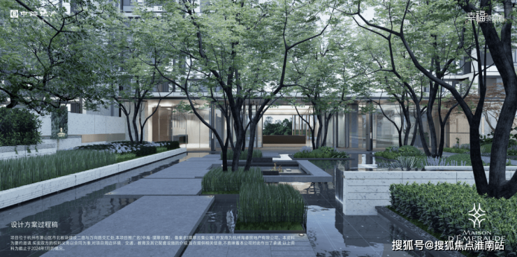 切换到小区主入口,以院落、水景、长廊形成了系统化场景串联,以泗水归堂为节点,把喧嚣城市代入静谧园区,形成酒店般的归家感受。
