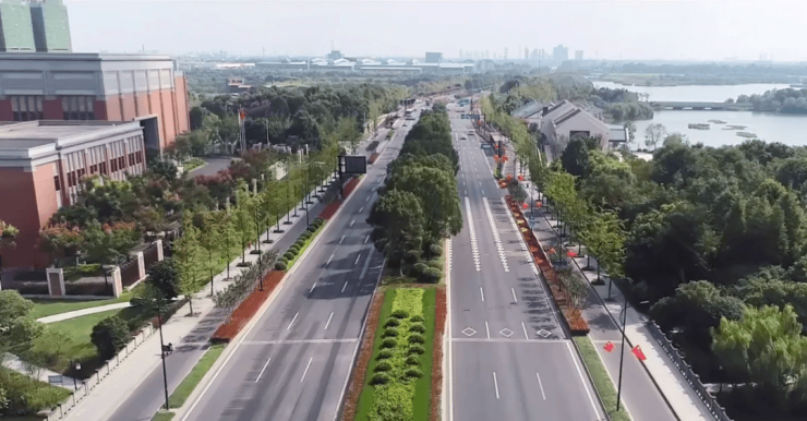 横向的江东一路,被评为钱塘区最美道路之一,直抵江东大桥;