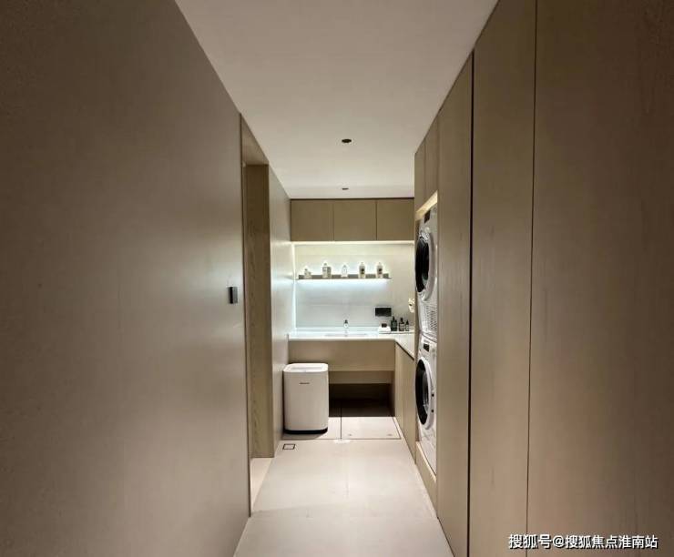 靠户型东侧,样板间设计了一个独立衣帽间和主卧套房的第二个卫浴空间。