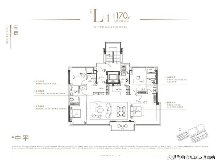 中平户型采用大平层的“平墅”设计,户型结构上的超级尺度感,在目前整个市场上都是极为罕见的。而且,170中平户型,类5开间朝南+边套主卧270°的飘窗,给生活更多奢享。