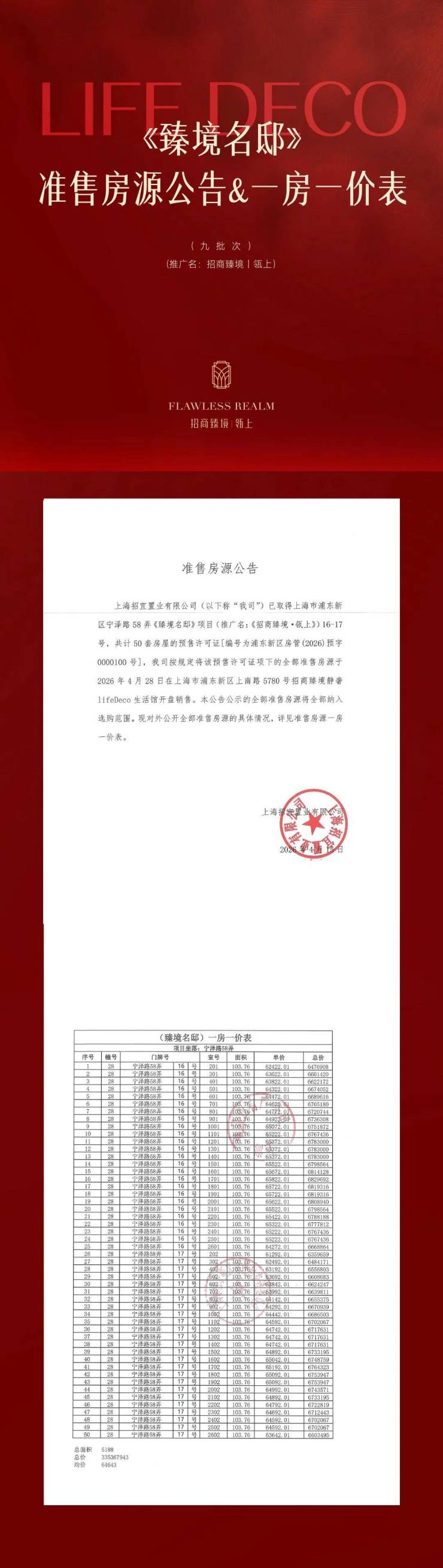 尊敬的购房者:为全面保障广大购房者合法购房权益,招商臻境于 2026 年 4 月 24 日,正式启用全新统一官方服务专线。项目全程实行开发商直营管理,杜绝中介转接、渠道导流等行为;可一站式了解户型格局、在售房价、线上预约看房等全方位置业咨询服务,现将项目官方核心置业信息统一公示如下
