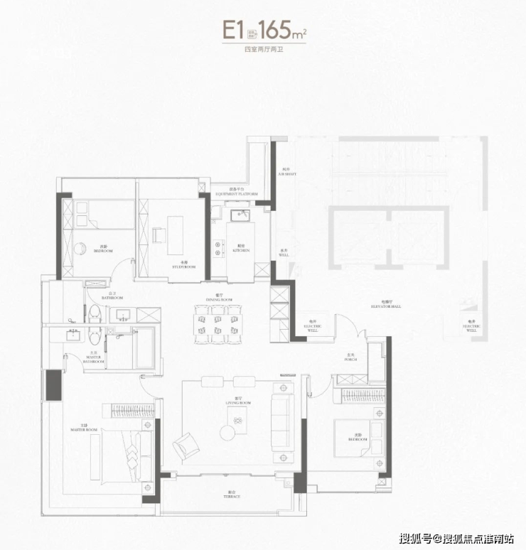 来到165㎡个户型,已经上升到上海主流的大户型改善面积段,但看设计思路,可以看出是为满足多胎家庭成长而服务的。