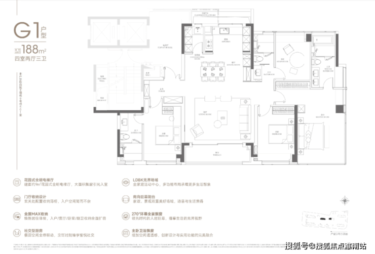 上海宝山中環置地中心望雲售楼处电话☎:400-9659-259(预约看房热线)188户型2梯2户,有独立的电梯厅。4房3卫设计,还是3明卫,这两点还是不错的。