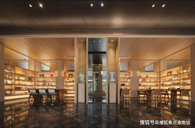 从小区南侧的次入口进入,最吸引人的就是由75片珍贵的玉石拼接的玉石照壁,温润玉石与冷调金属相衬,光线流转间,含蓄托出中国人最喜爱的“金玉满堂”寓意。