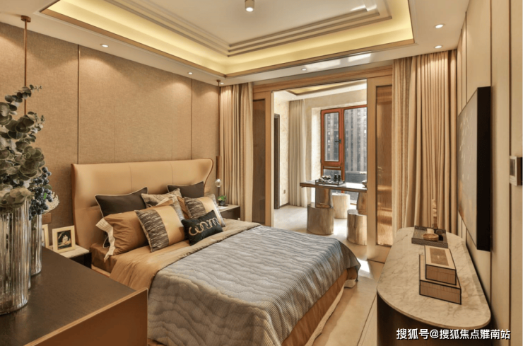 南向老人房为全功能套房设计,尤其是南向阔绰阳台,试想一下父母起床一步就能跨到阳台,莳花弄草、悠然烹茶陶冶情操。