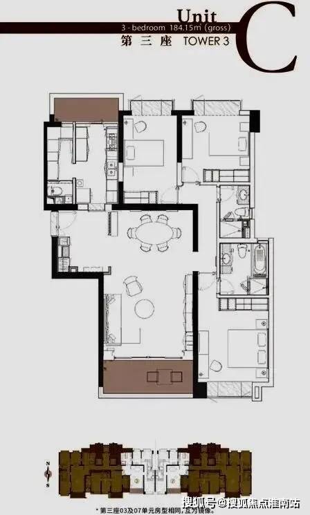 产品户型方面,预计主推建面约134㎡2房、建面约184㎡3房和建面约200㎡3房,还有建面约237-341㎡复式。