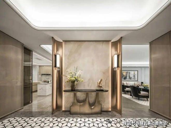 ·玉兰门庭:取意上海市花白玉兰,勾勒总长约65米、高约13.7米的玉兰门庭:飞翼祥纹铜雕府门镶嵌非遗掐丝珐琅门钹,礼迎璀璨归途;环抱式落客前场移步易景,归家仪式感拉满.
