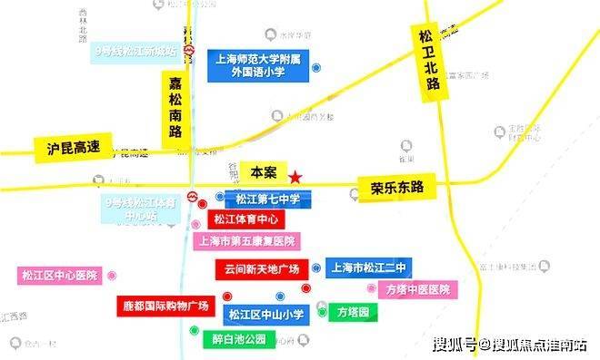 交通方面,项目距离9号线松江体育中心站直线距离约1.2km,步行约20分钟可达。同时紧邻荣乐东路,旁边还有嘉松南路、松卫北路、沪昆高速等主要道路,自驾出行十分便捷。