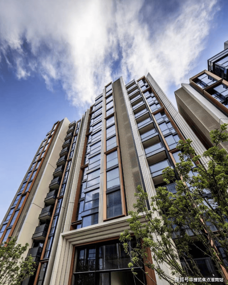 天安1号前期的住宅外立面选用铝板+石材,搭配大面积玻璃,颜值出众!