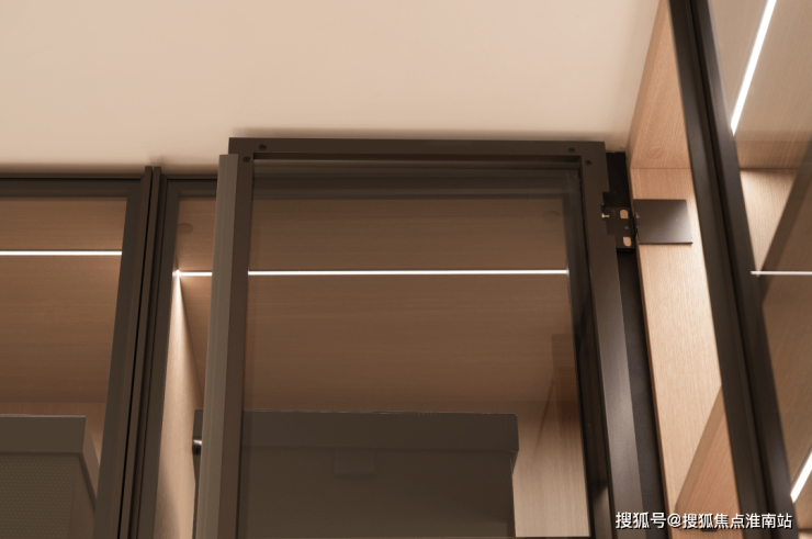 极简审美,从背景墙开始一路延展,无边框隐形门,以及简化的金属踢脚线,让立面保持完整如一。
