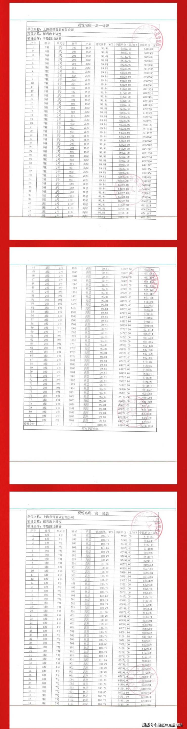 最新一房一价表: