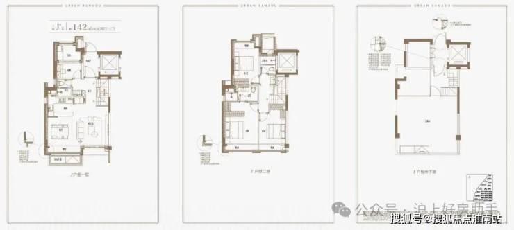 建面约139㎡上叠户型,三层是会客区,四层是居住区,阳台+露台+多个飘窗设计,附加空间非常大,在别墅类产品中实属罕见!