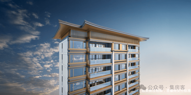 汲取中式建筑精髓所勾画出的飞鸟屋脊挑檐,檐角曲线似飞鸟展翅,彰显了“鹏程万里”之意。