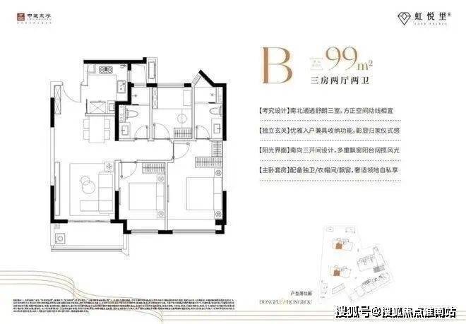 产品方面,中建虹悦里整盘248套房源一次性入市,从建面约79㎡精致2房,到建面约91-99㎡轻奢3房,多元户型总有一个适合你。