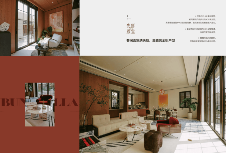至多约13.5米南向面宽,较同面积产品多出约40%采光面。高窗墙比造就IMAX级别墅视野,庭院景观如画卷般嵌入室内。
