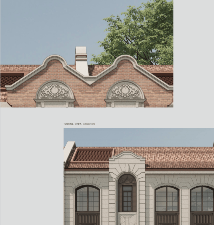 以优雅的拱券形态做为原型创作,萃取"西式洋房"的对称美学与精致细节,融合现代石材,打造"经典形制与当代审美的共生。