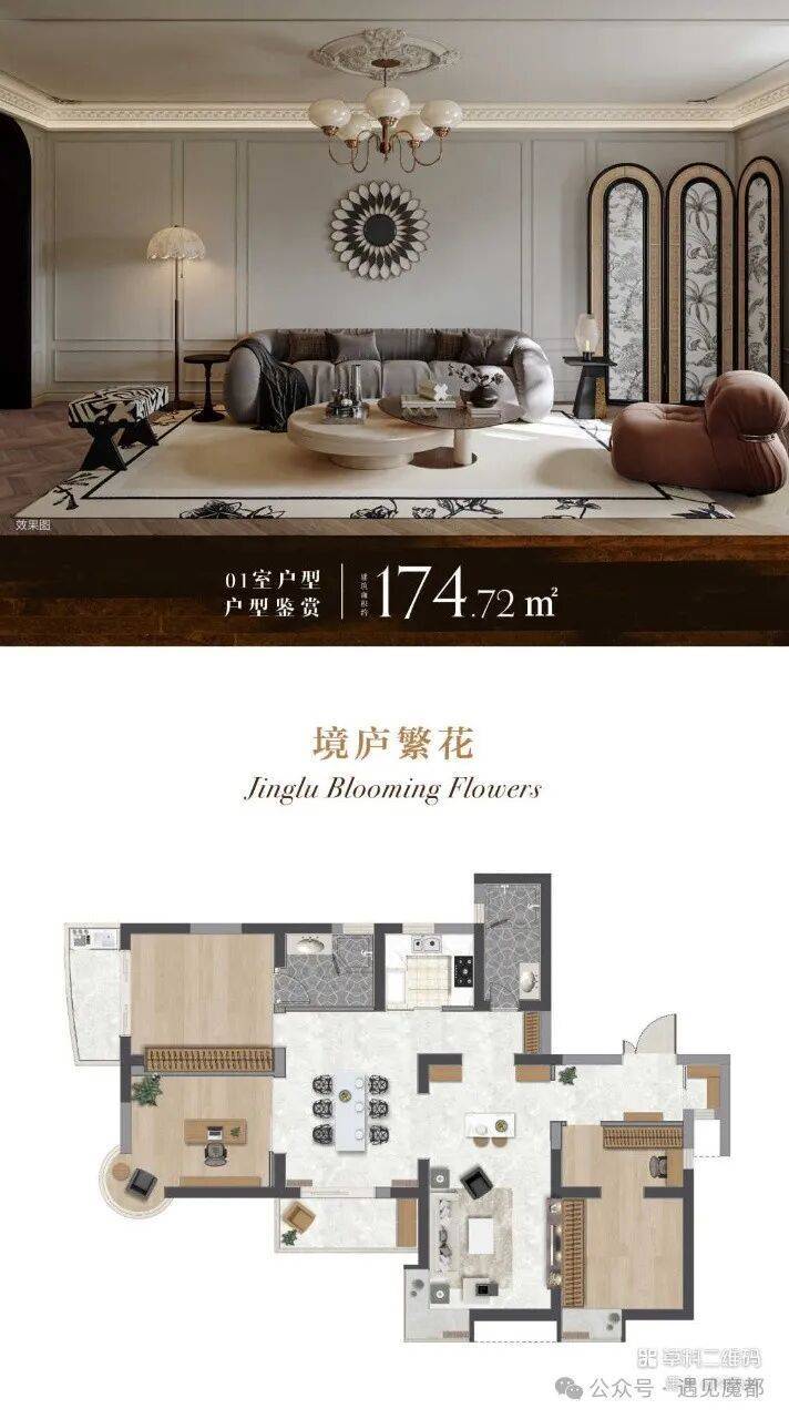 在售户型面积:约160-174㎡奢阔大平层,三梯四户,得房率约75%