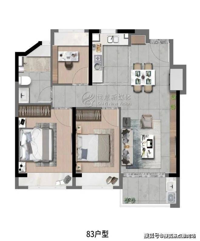 高层建面约83㎡3房2厅1卫