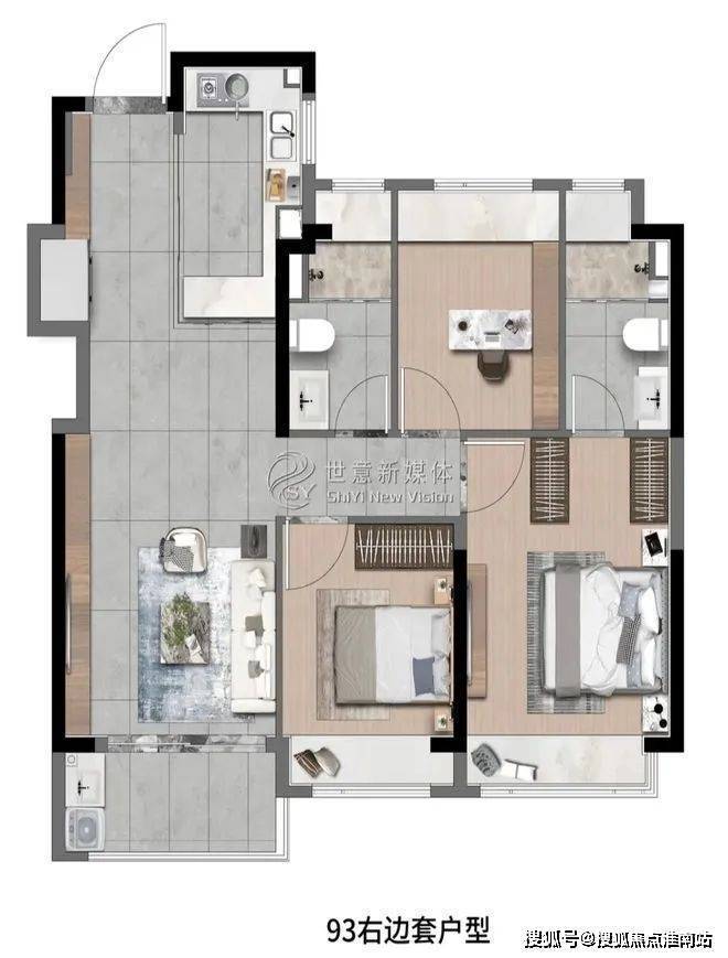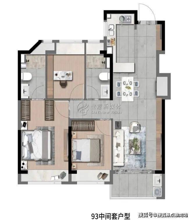 高层建面约93㎡3房2厅2卫
