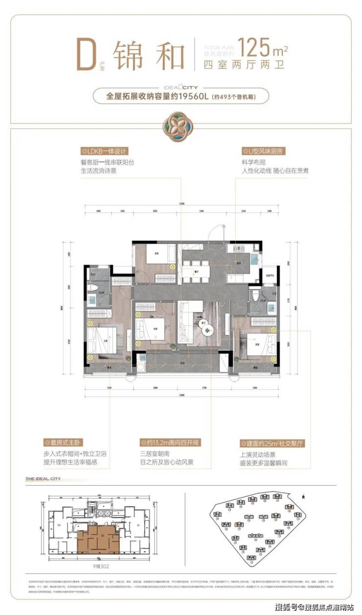好比这个 爆款四房户型用约125方面积,过出约200方的奢华感