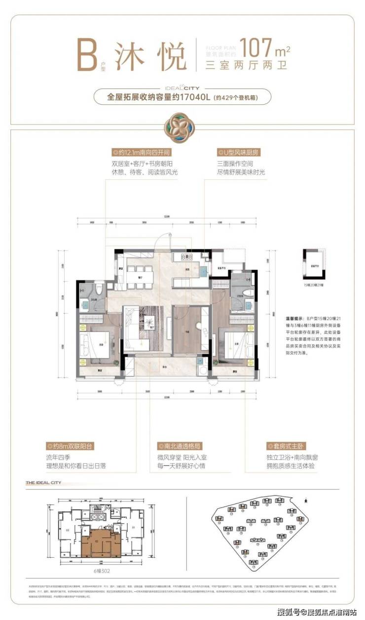 建面约107方户型则把重点放在舒适度上。