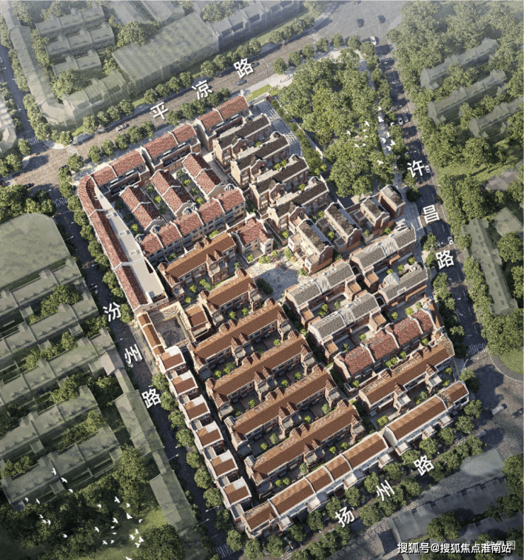 【翠湖滨江】溯源“花园里弄”的建筑形态,尊重街巷里弄的空间秩序,打造一中心、四节点的“四海一心”的里弄布局。