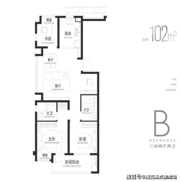 建面约104㎡三房,与公园共生