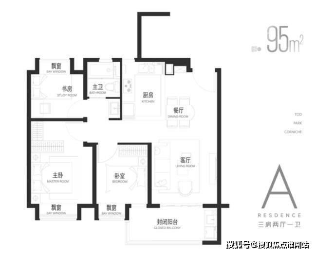 建面约95㎡三房,友好入门级产品
