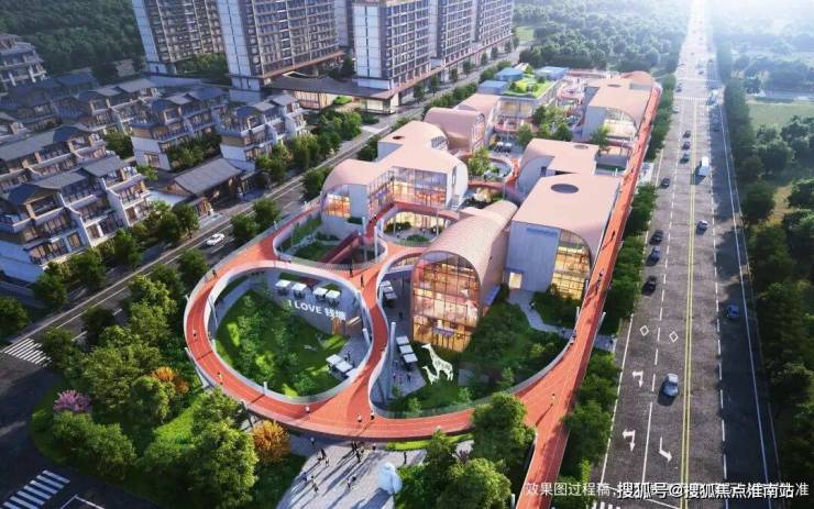 据官方消息,项目由建发代建,以弧形空中连廊生态纽带、屋顶阵列式景观构架,搭配明快的色彩,巧妙串联起商业、运动公园、烟火美食街与主题市集。