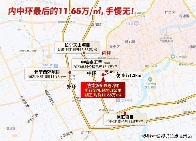 上海古北99售楼处电话☎:400-881-8994(预约看房热线)再看环线位置:古北99步行到内环仅约1.3公里,均价11.65万/㎡;而长宁天山项目贴着中环,首开13.88万/㎡;长宁西郊项目临近外环,联动价也要11.8万/㎡。