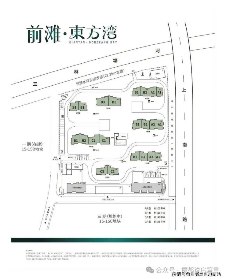浦东三林永泰三里城二期定名「前滩·东方湾」该项目容积率2.0,拟建16-17F高层,可售商品房364户,保障房48户,自持房136户。