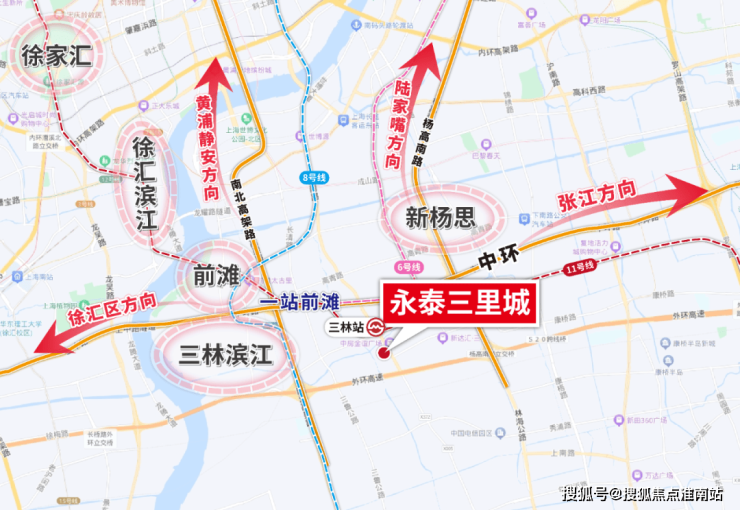 事实上,三林滨江在空间上与前滩更为贴近,但永泰三里城在时间距离上更占优势。