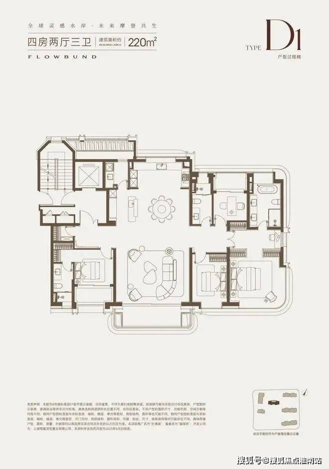 建面约220㎡四房,位于楼王位置,南北无遮挡,中西双厨,多阳台,双套房,加上约3.3米的超标层高,标准的一生之宅!