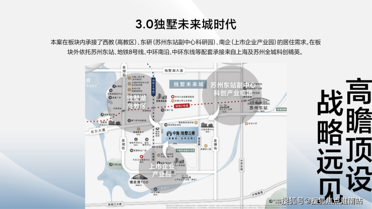 2022年,中海再次落子园区,这次我们选择了独墅未来城 ,本案位于独墅湖未来城南部,未来城以独墅湖科教创新区为载体,以苏州东站副中心为全新发展极。