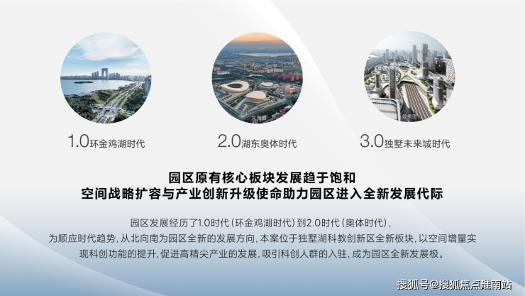 全新园区发展极,3.0独墅未来城:园区从1.0环金鸡湖时代到2.0湖东奥体时代,再到目前3.0独墅未来城时代,谋划全新发展极。