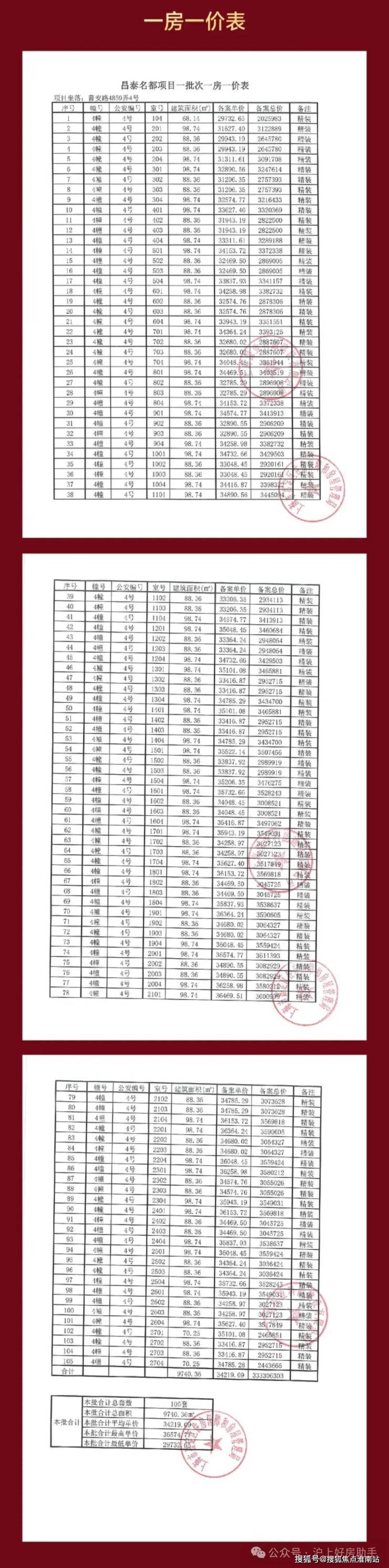 深业深嘉上府项目一房一价表: