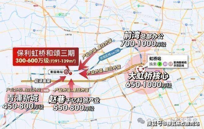 从周边区域房价来看,东面2站之隔的前湾,保利虹桥和颂售楼处电话☎:400-8815-114✅✅房价已达700-1000万级;徐泾650-1000万级,赵巷550-800万级,即便下游的青浦新城,房价也处于450-800万级。