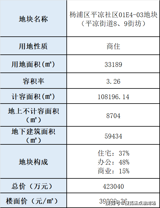 本次公示为01E4-03地块(平凉街道8、9街坊),占地面积33189方,容积率3.26,总建面176334方,地上计容建面108196,地上不计容建面8704方,地下建面59434方。拟建5幢15~17F高层住宅及大规模商业建筑。