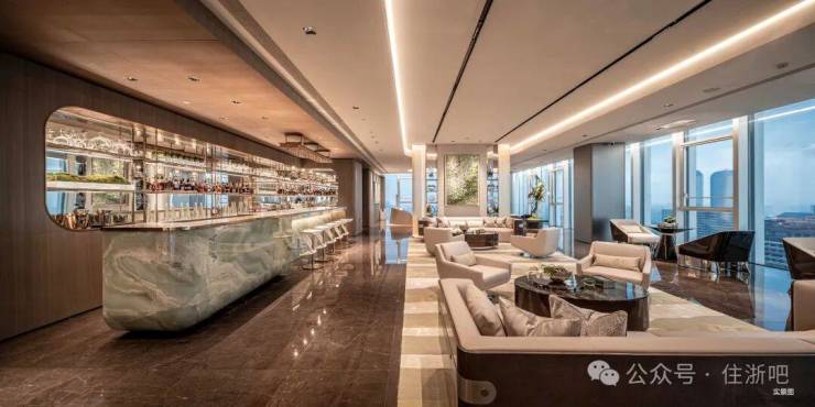 【意趣丰盈的会所】项目会所位于51层,以高定「云端六境」,聚“社交、会晤、私宴”等复合型功能,呈现惬意天际生活空间。