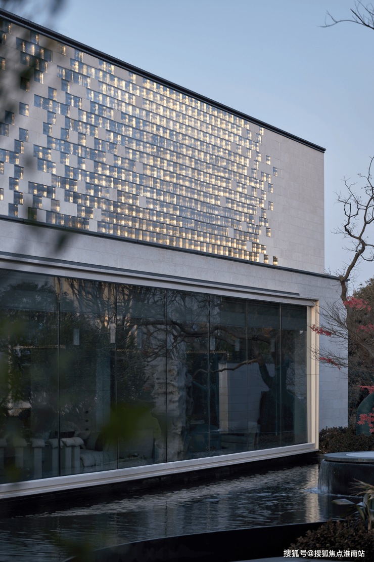 空间遍布水景,模糊室内外的界限,嵌套琉璃盒子,打造江南园林的“空间转合”。