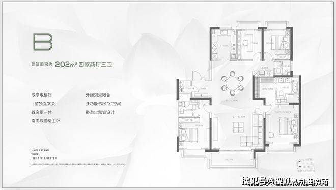 M+科技体系:首创M+科技体系,以智慧、健康、精工、生态四大体系,赋予空间美好的体验与品质,每一寸细节皆为生活悉心定制。