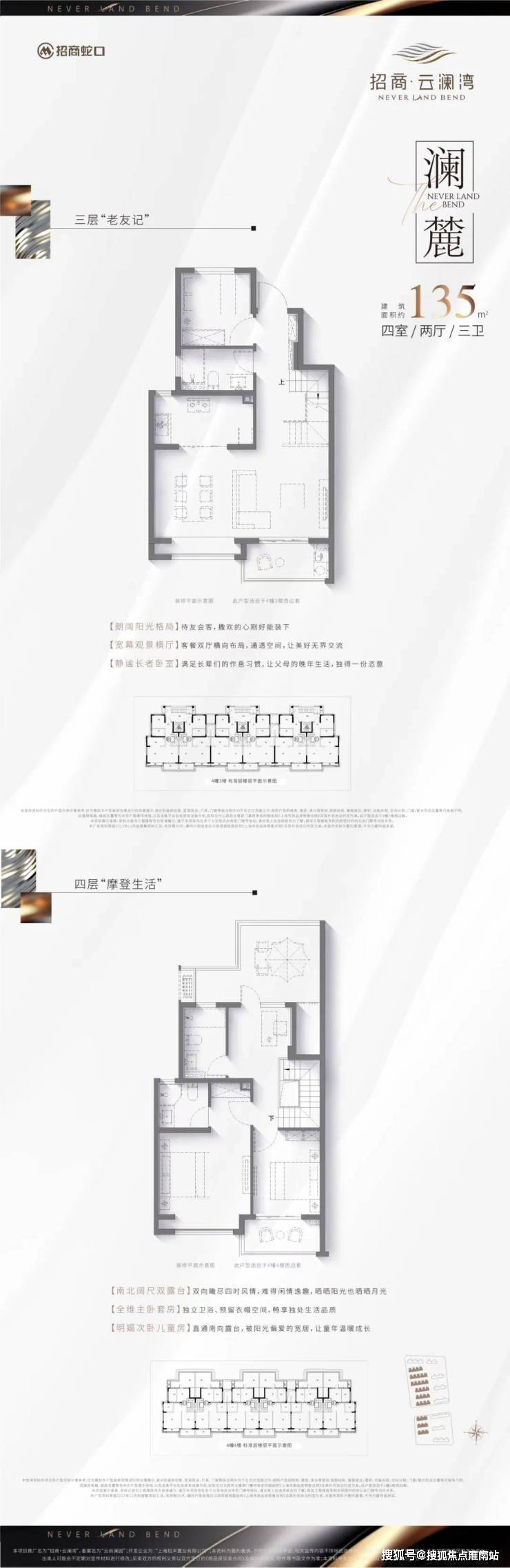 招商云澜湾售楼处电话:400-8118-224除了小高层产品, 项目此次还推出约135-141㎡叠加户型,作为只有上下两叠的真叠墅,无论居住尺度感和尊贵感都上了一个LEVEL,带来一步到位的理想改善生活。