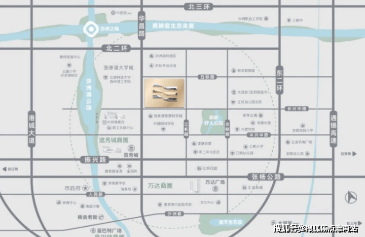 项目北面约2公里处就是规划中的张家港中医院新院区,总建筑面积约18.5万方,投资19.15亿元,预计2028即可投入使用。建成后不仅能填补城北医疗资源的空缺,更是给周边区域的居民带来医疗便利,还能给港城人民带来高质量的医疗服务和健康服务。